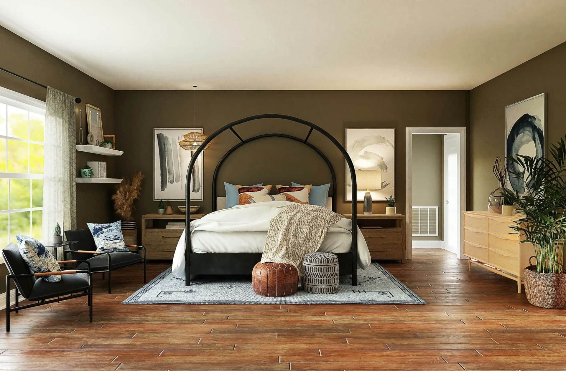 - Pencahayaan dan pengudaraan: Maksimumkan penggunaan pencahayaan dan pengudaraan semula jadi untuk menjimatkan tenaga dan mewujudkan persekitaran yang sihat. Gunakan tingkap dan pintu yang besar untuk membenarkan cahaya dan udara masuk ke dalam rumah.