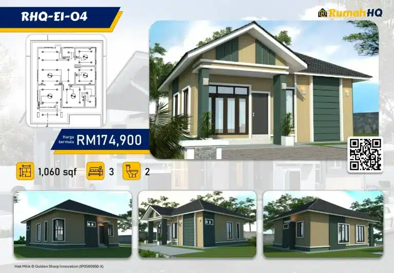 Jelajahi rekabentuk rumah mewah dan minimalis dengan RHQ-E1-04 hanya dari RM174,900! Dapatkan pelan percuma dan ubah impian rumah anda menjadi kenyataan hari ini!