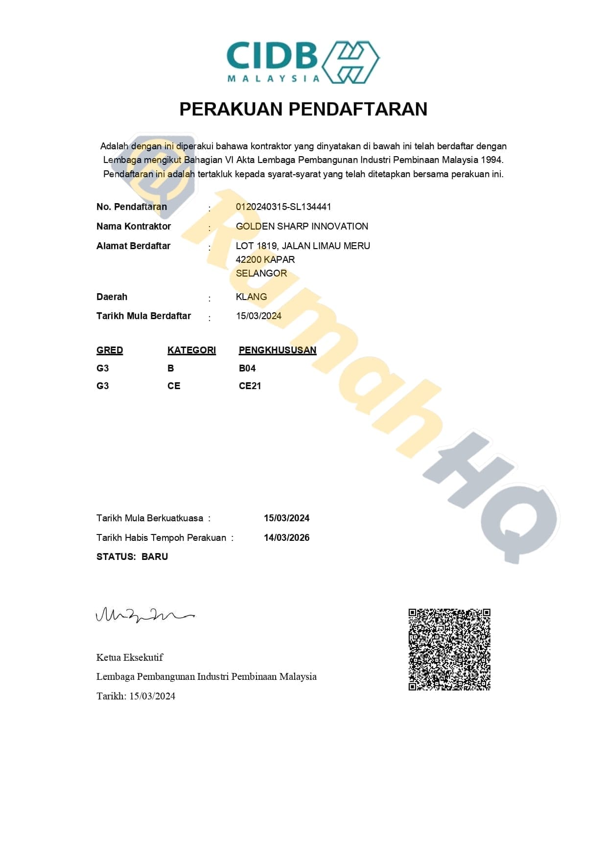 Sebagai sebuah syarikat yang berdaftar dengan SSM (IP0580950-X) dan CIDB Malaysia sebagai Kontraktor G3 (0120240315-SL134441), kami mempunyai pengalaman luas dan kepakaran dalam industri pembinaan dan pengubahsuaian rumah.
